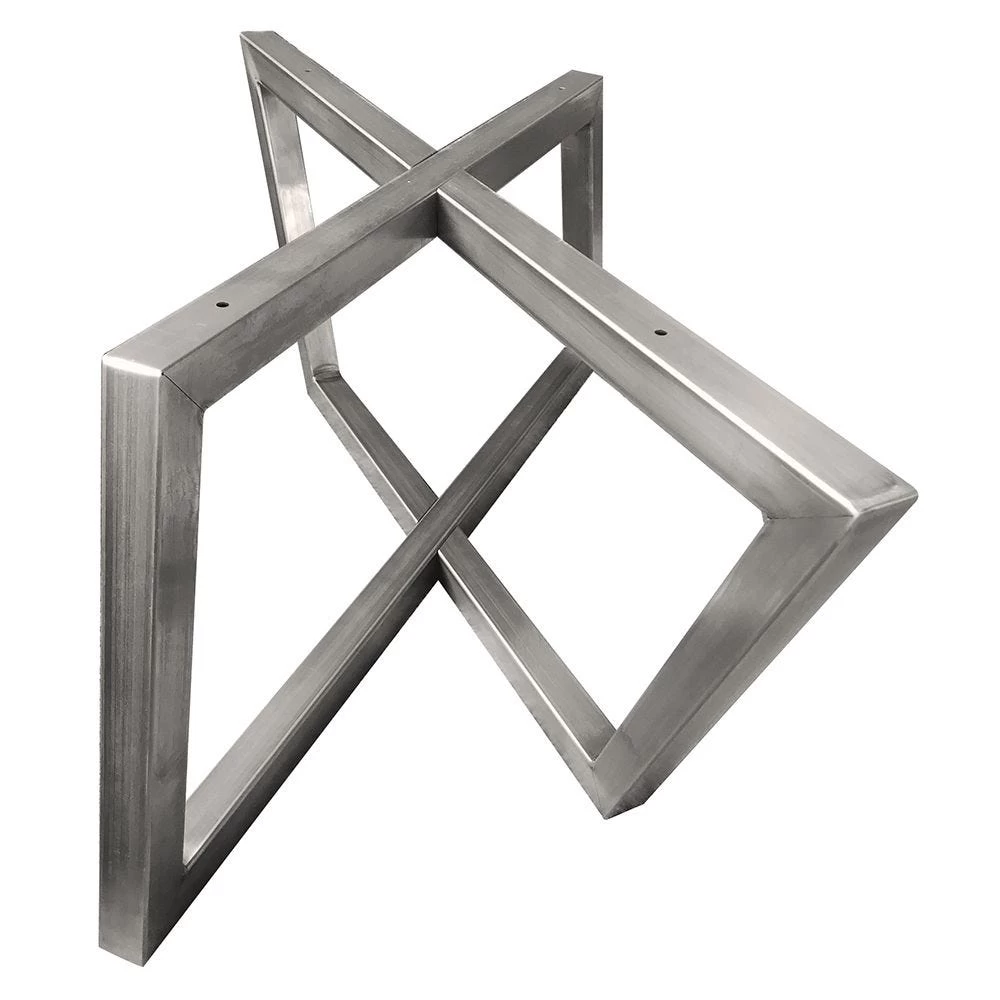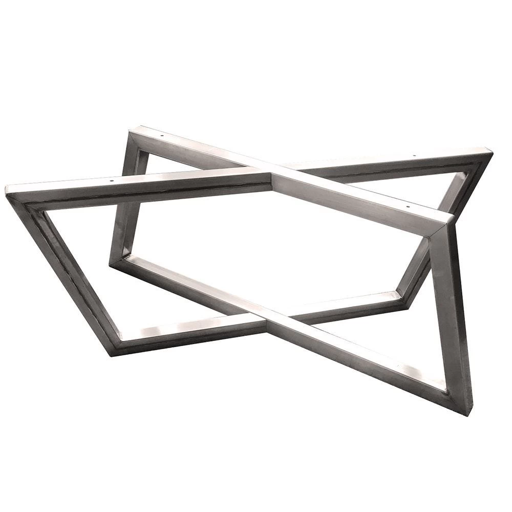 The eye-catching Rhombus table base is made up of two geometric frames that intersect to support the top of your choice. At 15-1/2” high, it’s the ideal height for a coffee table, and is sure to attract plenty of attention as the focal point of your room. Simply buy or build your own top and attach the base for a sturdy, stylish piece of furniture. The leg sections are welded from thick steel, creating a solid foundation. Made from unpainted raw steel, it will need to be coated with clear lacquer or metal paint to prevent rust. Alternatively, you can leave it raw and it will acquire a natural rust patina over time. Includes all necessary mounting hardware. Handmade in Canada. Approximate overall dimensions: 15-1/2” high x 12-3/4” wide x 28” long​​.