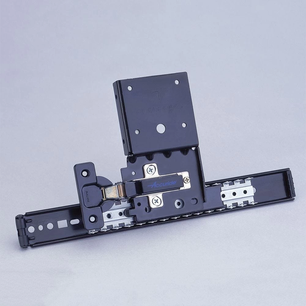 Accuride’s 1321 Pro Pocket Door Slides feature ”Auto Open,” which gently pushes the doors forward at the end of their travel, ensuring they are extended fully before closing. This eliminates scuffs and dents at the pivot points. They also feature innovative brackets that accept partitions for hassle-free installation—no dadoing required. The 1321 is ideal for home and office cabinets as well as built-in storage casework. The included hinges support both inset and full-overlay applications (see Technical Documents for detailed information).
