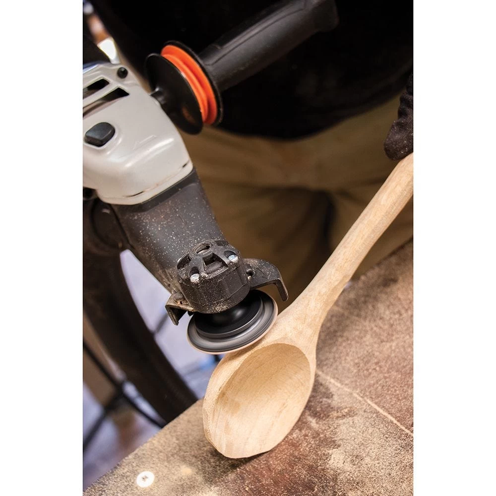 - Rubber backing pad behind sanding discs offers enhanced support without compromising flexibility
