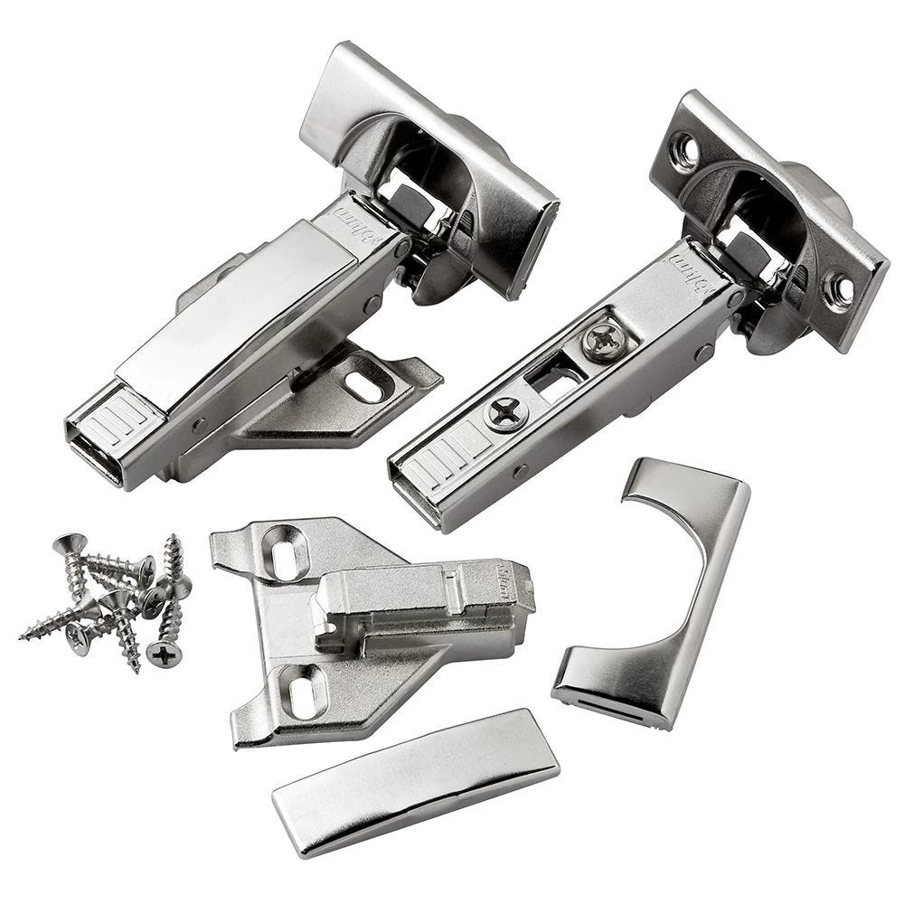 Smooth, whisper-soft closing action paired with an equally graceful appearance make the new BLUMotion hinges a standout for visual and tactile aesthetics. BLUM’s engineers have managed to integrate a virtually invisible damping mechanism into the much-loved Clip Top hinge design, preserving all of the 3-way adjustability and clip-on ease of the original. No more rattling glasses and banging cabinet doors and no bulky apparatus on the outside of the hinge. In addition, each hinge has a switch for turning the soft-close feature on or off: perfect for adjusting the speed of the close. Switching off one hinge on smaller, lighter doors allows the same soft-close speed throughout your kitchen. Self-lubricating with a full 110° opening angle. Compatible with doors up to 1″ thick. This hinge is compatible with the JIG IT® Hinge Plate Template D #57345 (Sold Separately) for faster, more precise installation.
