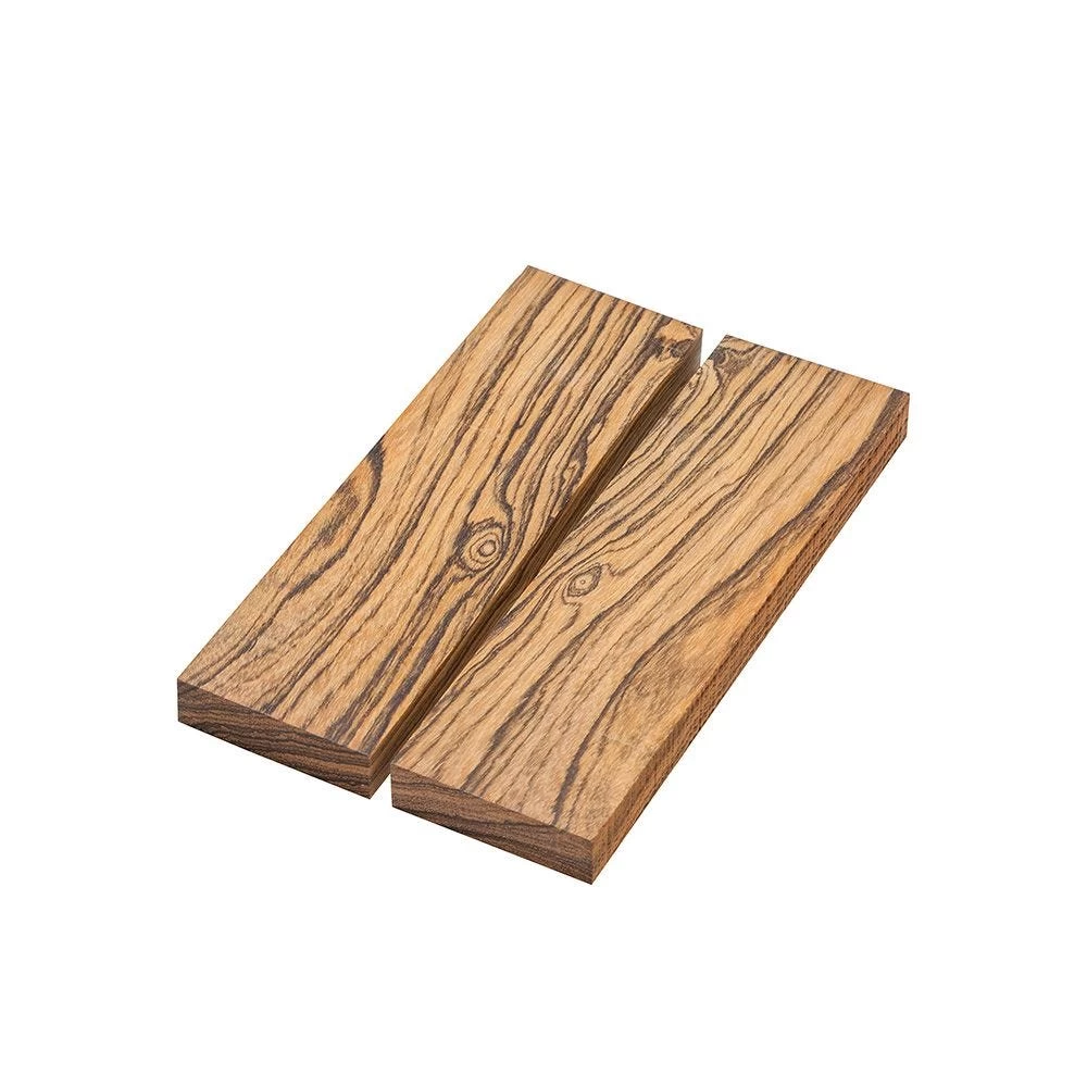 Though quite heavy, bocote machines beautifully, and its weight adds a substantial feel to your knife handles. It boasts striking grain—a yellowish brown backdrop interspersed with bold, nearly black stripes, sometimes with swirling patterns and eyes. With it’s fine texture, high oil content and beautiful luster, bocote makes a standout knife blank to complement your best blades.