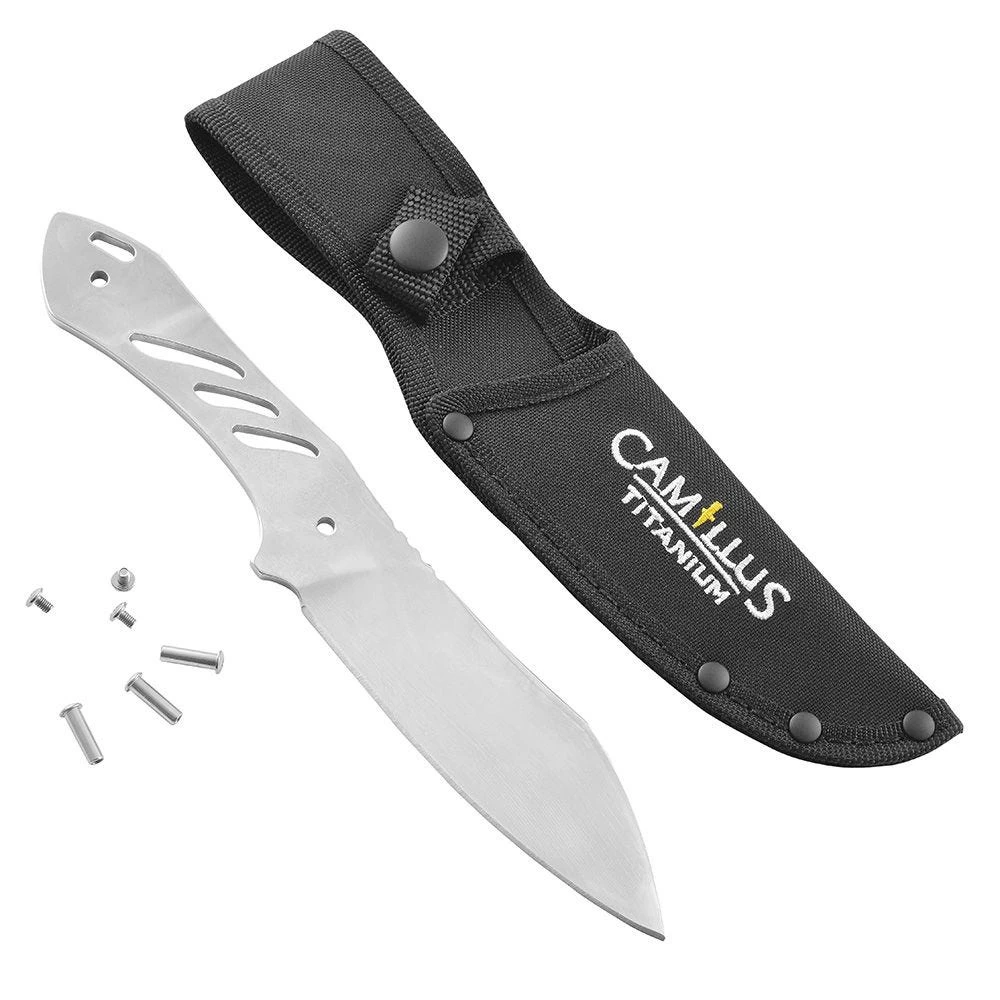 You’ll love the results you get with this premium knife kit—just shape the handle from the wood of your choice (sold separately). The blade is made from 420 stainless steel with a special proprietary titanium coating that penetrates for a permanent bond, superior corrosion-resistance and greatly increased hardness. With a Rockwell hardness of HRC54, the cutting edge will stand up to hard everyday use. Includes a sheath and instruction sheet.