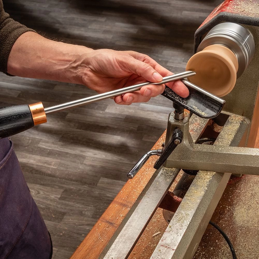 Made from cryogenically treated M42 high-speed steel, Crown Tools Fingernail Bowl Gouges hold a finer edge than standard M2 high-speed steel, and last up to 6 times as long as ordinary carbon steels. They feature a parabolic grind and a hefty 14” ash handle with a bold black finish. A copper ferrule adds the finishing touch to each tool, making it is as nice to look at as it is to use. Finely polished, with precisely ground bevels.