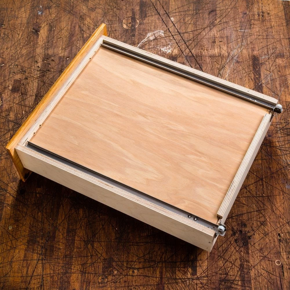 - Totally concealed design mounts to bottom of drawer for maximum drawer width and clean drawer side appearance