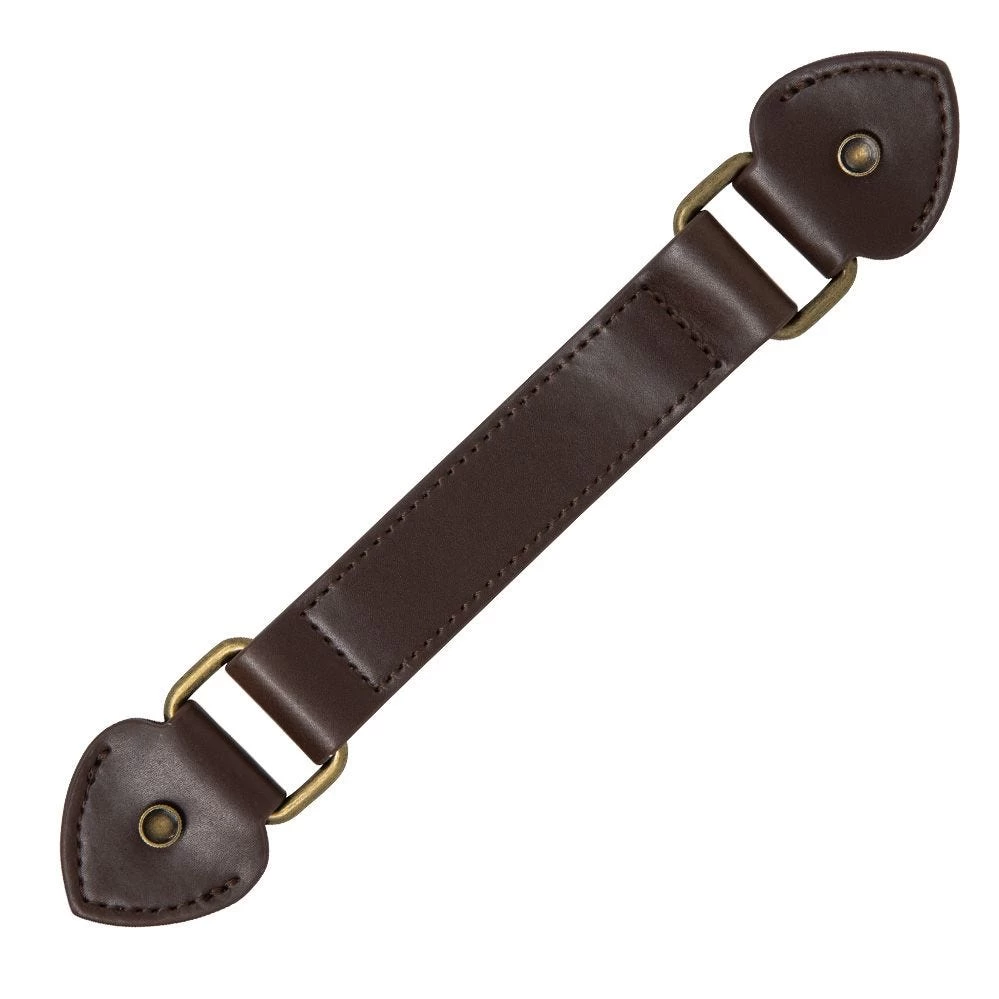 Customize boxes, chests and soft-sided items like cushions and baskets with this faux leather handle set. Made from durable faux leather with a side stitch detail, the handle provides a comfortable grip and a natural look. Each includes two solid brass Chicago screws for easy installation.
