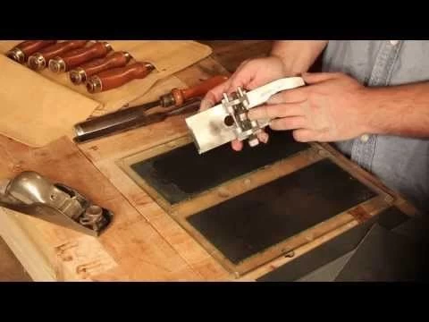 Holds chisels and plane irons in a set position to ensure a square edge on tools.
