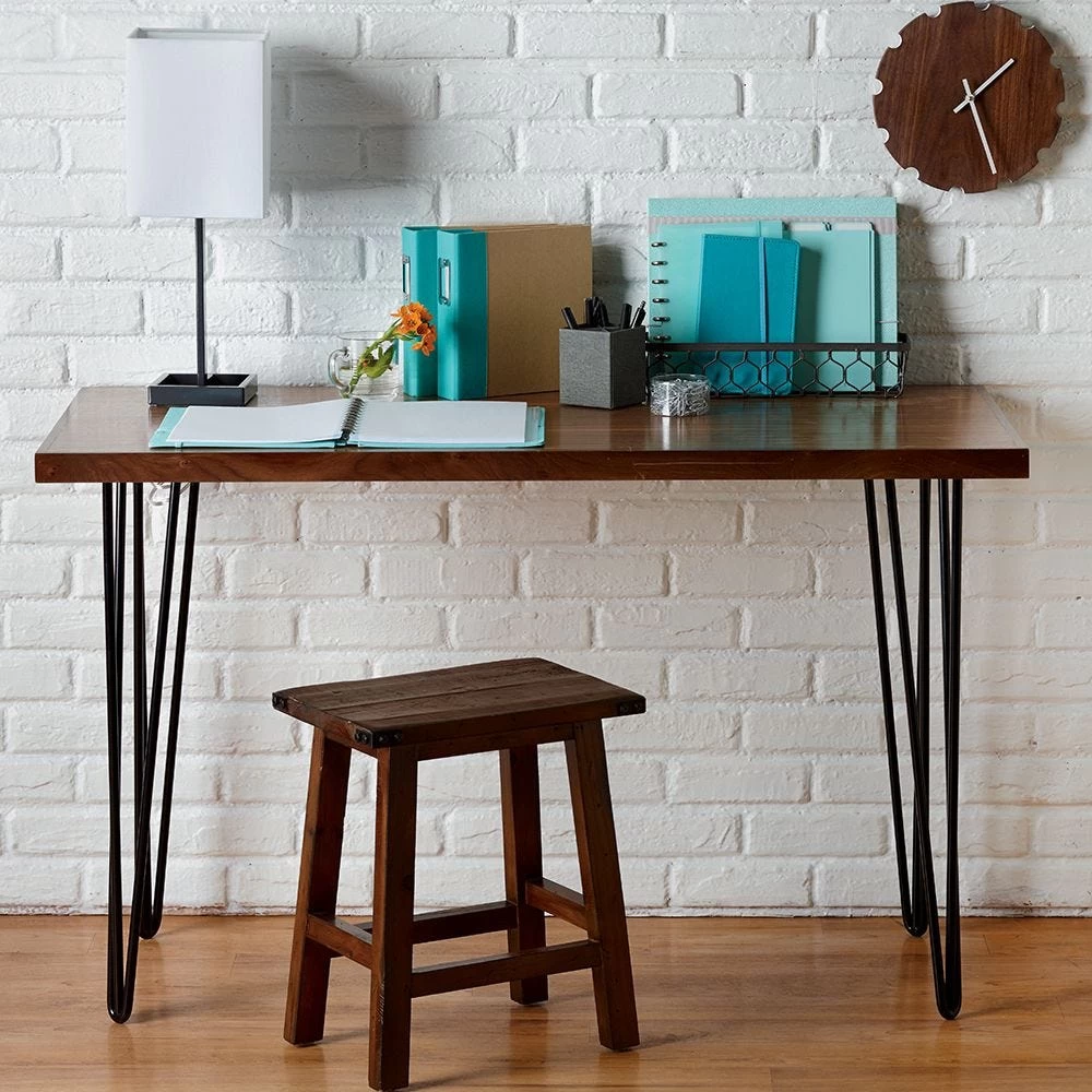 Fabricated from thicker 1/2” steel rod, and featuring a third support stem, these 3-Rod Hairpin Legs are substantially more sturdy than the standard variety. The increased rigidity makes them ideal for use on larger projects where standard legs would flex too much. At 28” high, they are perfectly sized for dining tables and desks, and also work for large occasional tables. In addition to dining tables and desks, 28″ Hairpin Legs are ideal for buffets, entry tables and sofa tables. They retain a simple, airy hairpin leg design that has been a staple of mid-century modern furniture for decades, and is enjoying a resurgence today. Sold in sets of four.
