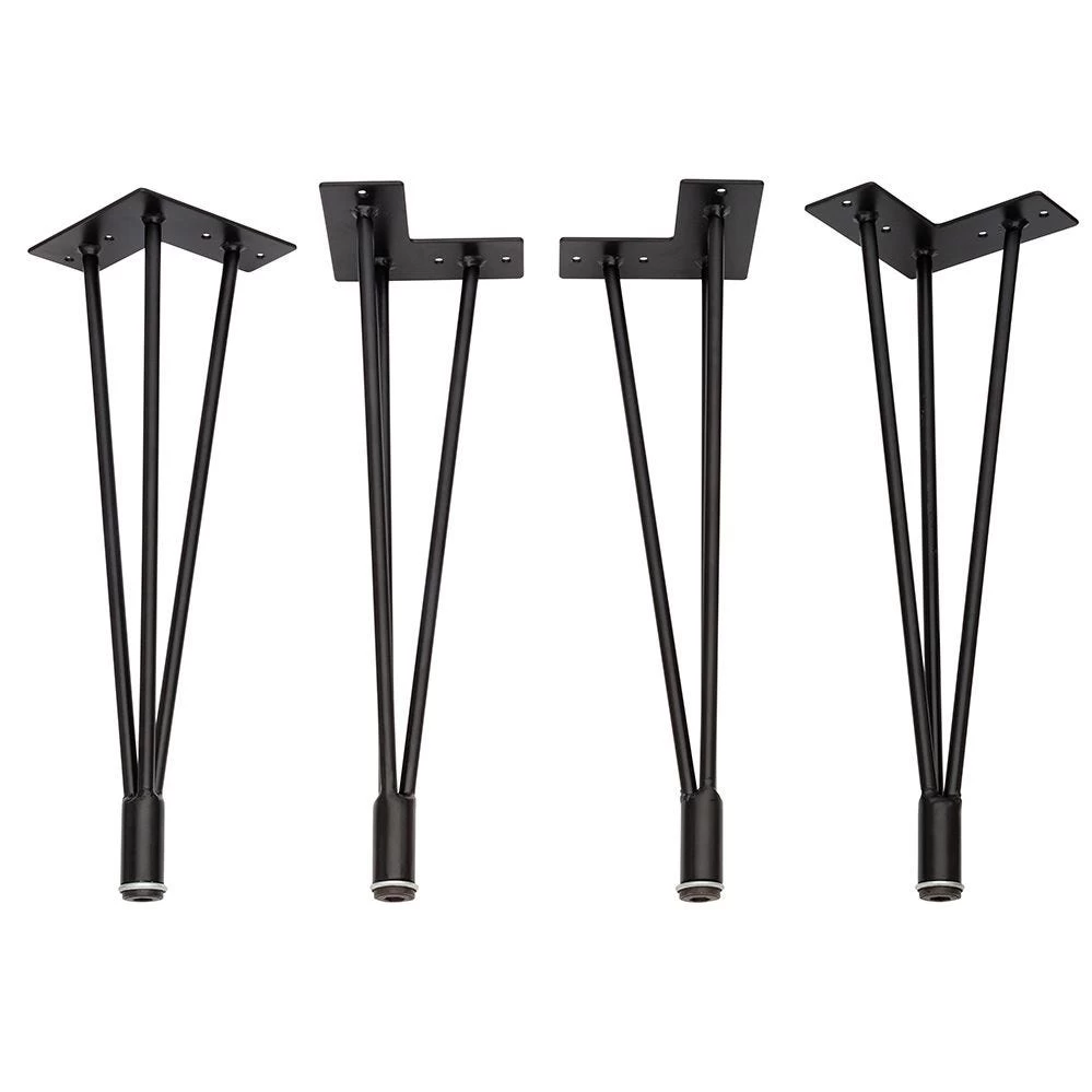 With the addition of a third support stem, these 3-Rod Hairpin Legs are rigid enough to support heavier tops, such as those on dining tables, desks and small cabinets. In addition, each leg features a foot made from solid steel bar that houses an adjustable nylon glide. This lets you level the table—a nice benefit not often found on hairpin legs—as well as protect your floors from scratching. Choose the 28” models for dining tables, desks or large occasional tables like buffets, entry tables and sofa tables. Choose the 16” models for coffee tables, end tables and other small occasional tables. Sold in sets of four.