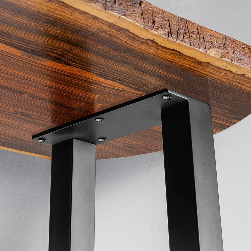 Our welded steel legs make it easy to create a functional, stylish table—just add a top in the material of your choice. Choose from several heights to showcase a prized slab of lumber, or use the shorter legs to support a custom-made cabinet. The legs are sold in sets and arrive with a durable matte black finish. Adjustable feet allow for easy leveling on any floor. Each leg bracket is 8-3/4” wide at the top, and 10-3/4” wide at the bottom.