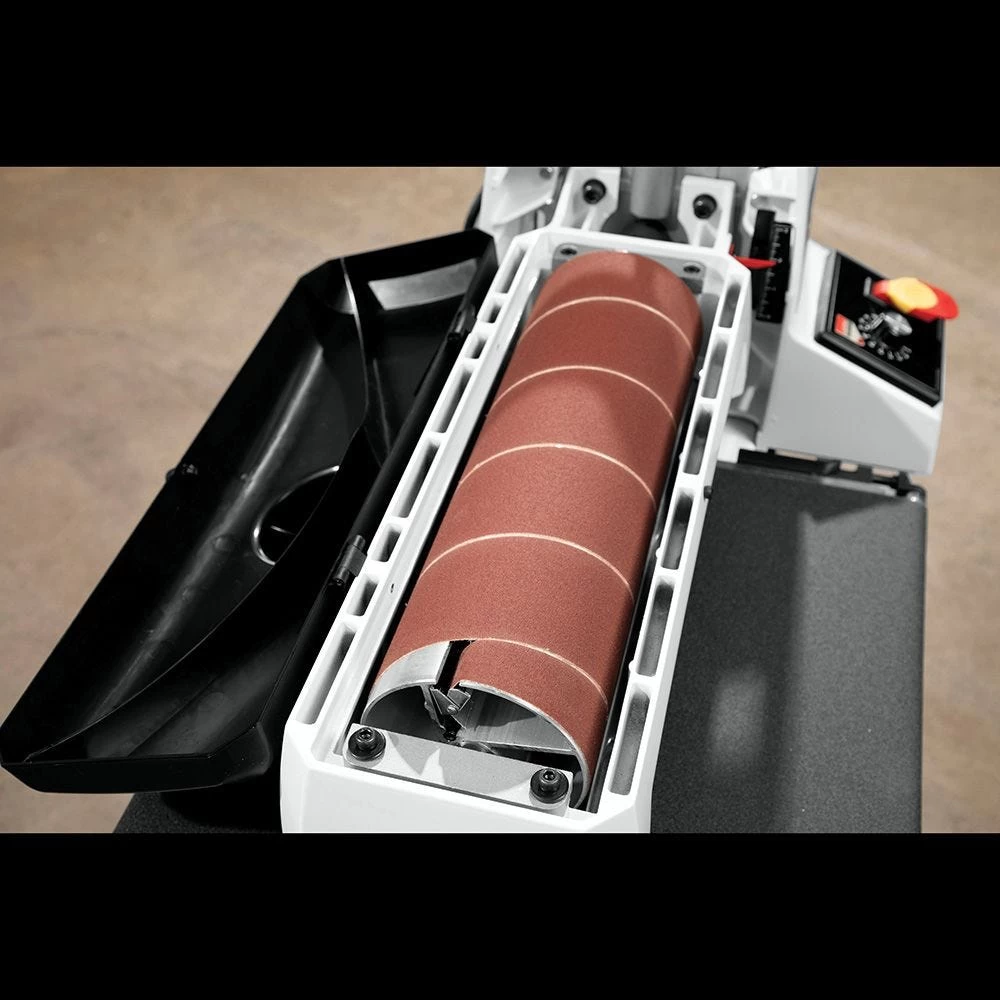 Sand panels up to 32” wide in just two easy passes with the Jet 16-32 Drum Sander. One pass will sand a panel up to 16” wide. Simple tool-free knobs let you adjust the drum parallel to the table to eliminate crowning and unsightly lines in the middle of panels over 16” wide. Variable-speed dial lets you choose the optimal feed rate for a wide range of projects and wood species. Sandsmart technology continuously monitors the load on the drum motor and adjusts the feed rate to prevent overload. The mirrored design of the dust hood optimizes dust flow. Try the Jet Drum Sander today to achieve effortless, professional-quality surfaces.