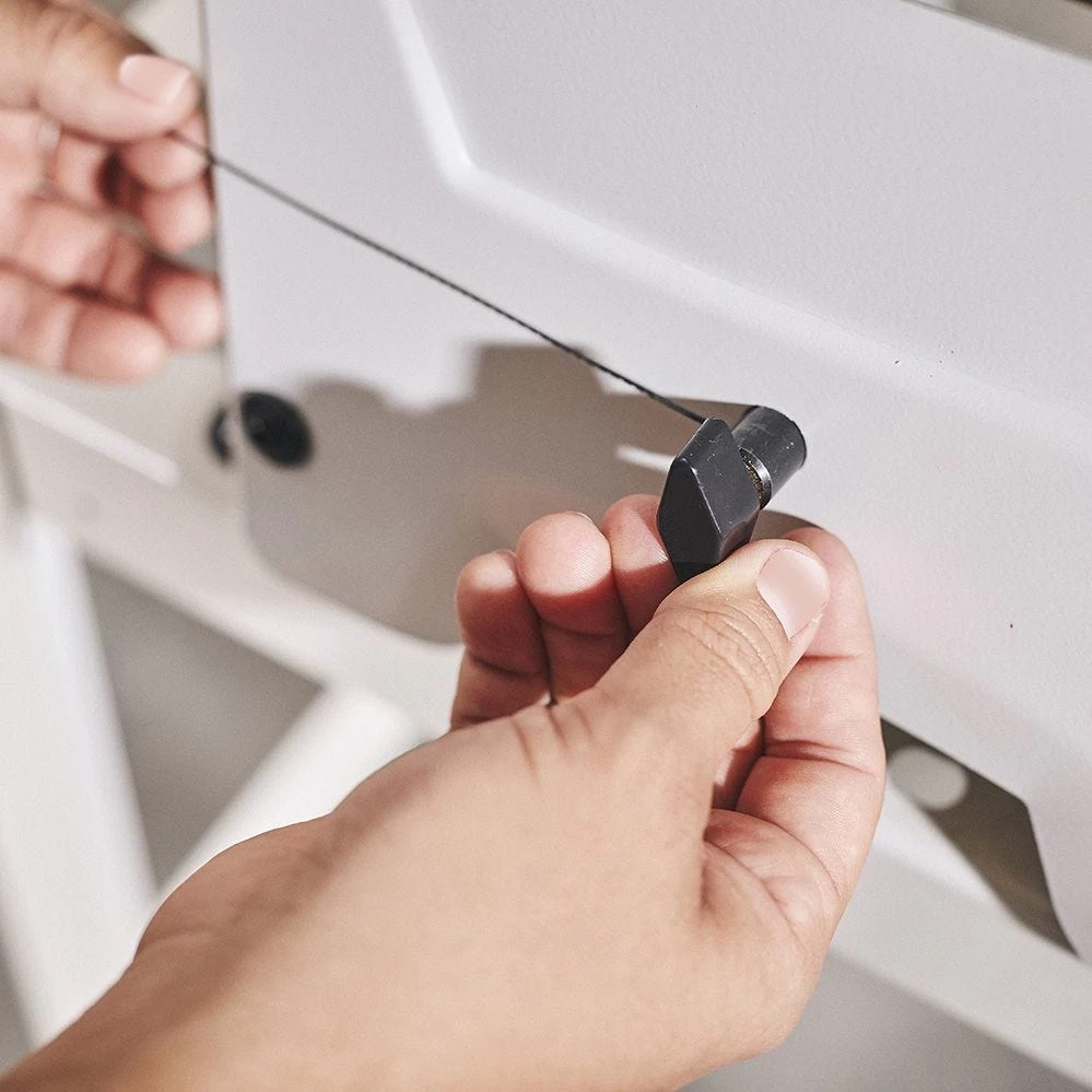 - Exclusive upper blade holder clamps and tensions blade in one step (patent pending)