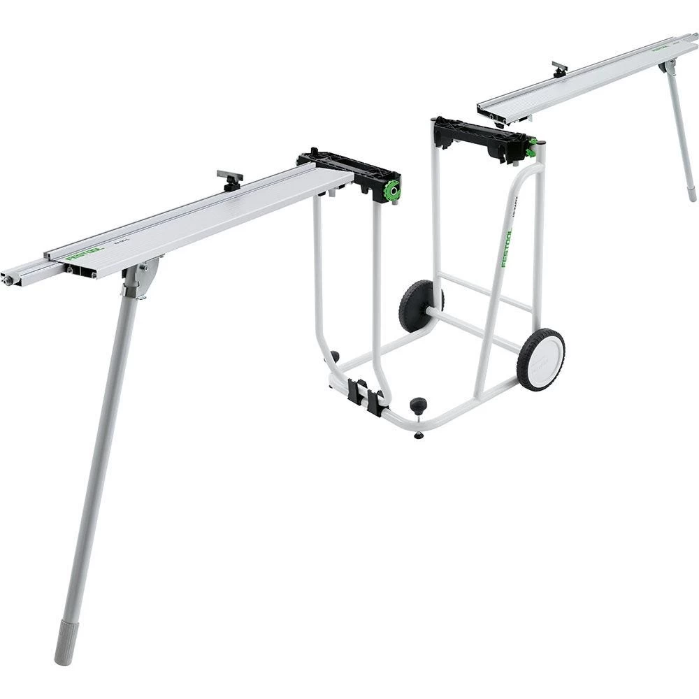 The Festool Kapex UG Stand provides a stable, comfortable foundation for your Kapex Miter Saw (sold separately). Thanks to its folding design and smooth-rolling wheels, it allows precise and efficient material processing on the jobsite or in the shop. Designed for fast and simple setup and breakdown, the UG stand is built for maximum mobility. It folds down with the saw still attached, and the included folding extension wings (left and right) are stowed onboard for easy transport and storage. The extension wings include a flip stop, metric measurement scales and adjustable legs for leveling with the saw. The telescoping wings can be extended from 1480 mm to 2400 mm when needed.