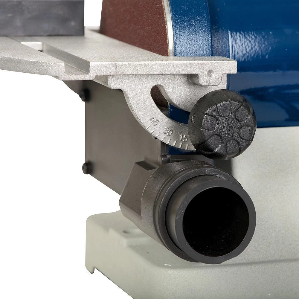 With its compact footprint, the Rikon 50-151 Belt/Disc Sander easily fits on a benchtop or table to provide a versatile sanding station wherever you need it. If you’re machining multiple small parts, you can set it up right next to your band saw or scroll saw so you can sand parts immediately after cutting, with minimal handling. The sander features a quiet, efficient induction motor and dual dust ports to keep the dust level down. A cast iron base with rubber feet and a metal housing provide stability and durability. Easily accessible tool-free knobs let you adjust the angle of the tables and track the belt.