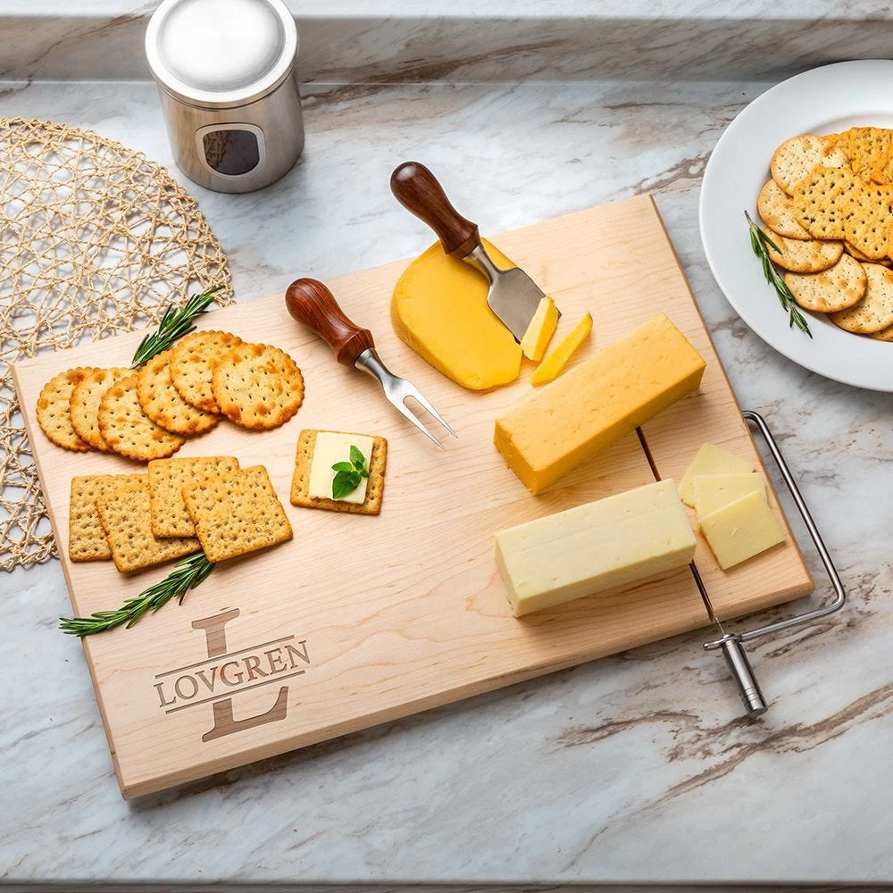 Here’s a beautiful, useful gift idea that’s as easy to make as it is to use. The gleaming stainless steel hardware looks great on the countertop, and the taut wire turns out straight, square cuts of cheese. You get to pick the board material and customize it as you see fit for the occasion and the recipient. To make, just cut your board to size, drill a hole in the end and make a kerf in the face. All the locations are outlined in detail in the included instructions.