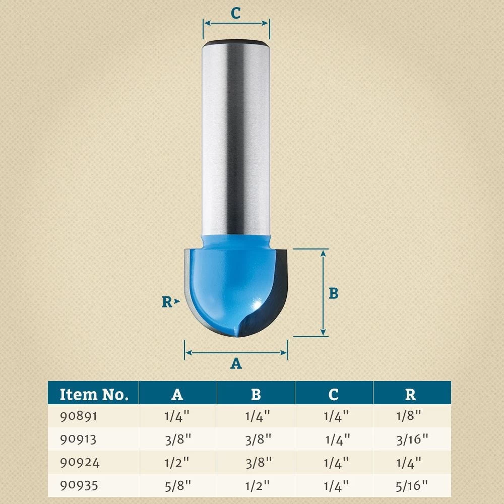 Our Core Box Bits are available in several angles to cut rounded grooves and slots of varying widths that can be both decorative and functional. Sometimes called round nose bits, they are commonly used for sign-making, and are also ideal for fluted columns, finger pulls, drain grooves on cutting boards, drip rails for window sills and more. Two flutes. 1/4″ shanks.