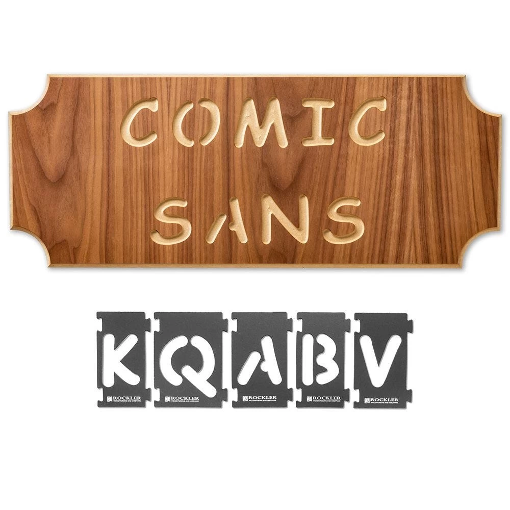 The templates interlock to form a stable pattern as you rout signs with appropriate carbide router bits and bushings (3/8″ for 2-1/4″ kits & 5/8″ for the 4″ Kits ). Secure patterns to your work surface with masking tape, Self-Adhesive Discs, or double stick tape (sold separately). Each Letters Kit includes a total of 40 letters with duplicates of common letters and three spacers. Each Numbers and Symbols Kit includes two each of 0-9 and 9 common symbols including @ and &. Requires the use of a plunge router that accepts standard 1-3/16″ template guides. The Interlock Signmaker’s Kits require either a 3/8” (#33967, sold separately) or 5/8” (#30933, sold separately) guide bushing, as well as a 3/8″ (#36676, sold separately) or 5/8″ (#32443, sold separately) signmaking router bit.