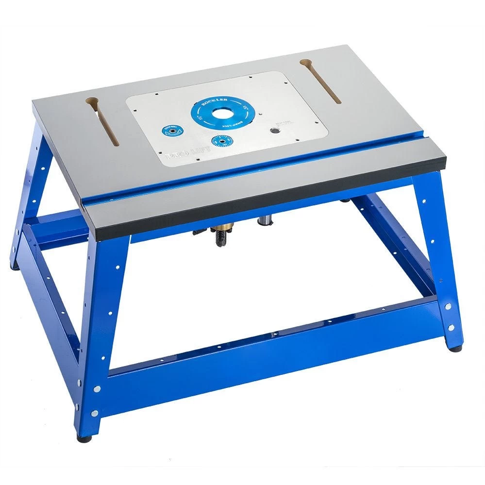 Two patent-pending features raise the Rockler Pro Lift into a class of its own: ultra-fast ”Quick-Gear” height adjustments and ”Snap-Lock” tool-free insert ring changes. Push the button to release the insert ring, then wind the Quick-Gear to raise the bit above the table in just seconds. Once the bit is installed, quickly lower it, click in the insert ring, and use the fine adjustment gear to set the final height to within 0.001”. All this is achieved more quickly, more efficiently, and more intuitively with the Rockler Pro Lift. Raise your woodworking to a new level.