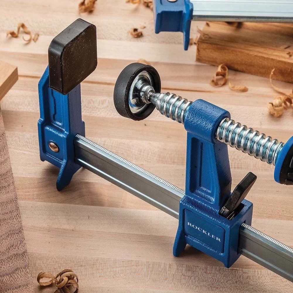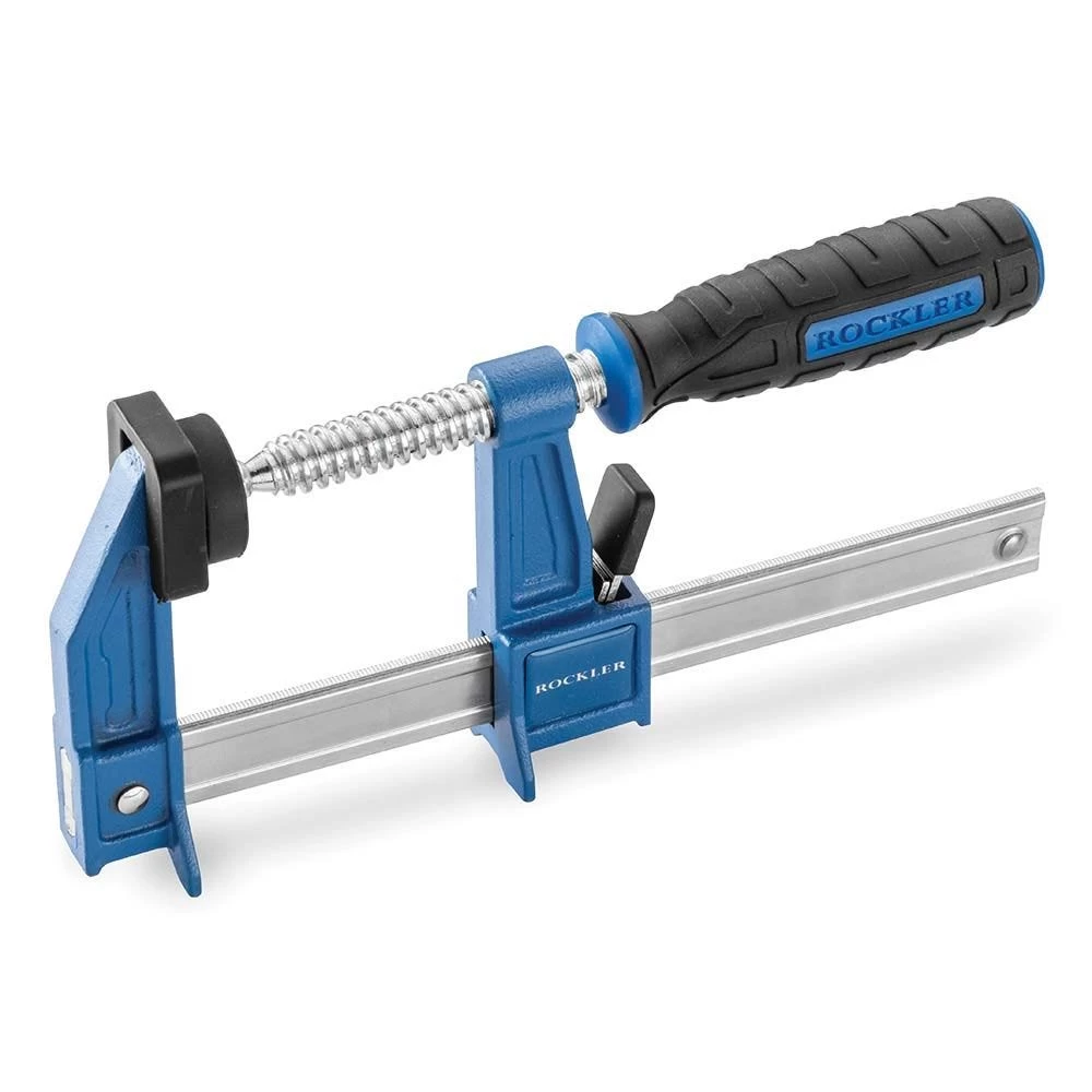 The beauty of our Sure-Foot F-clamps is their remarkable stability when stood upright on the bench. With the no-tip stability of the Sure-Foot base married to an F-style clamp body, you can set them out as needed, leaving both hands free for positioning and clamping your work. The redesigned handle provides exceptional grip and leverage, while the tried-and-true quick-release clutch enables quick closing without any slippage. The castings feature large clamping faces with included no-mar clamp pads on both sides. The carbon steel bars are impressively rigid, allowing up to 660 lbs. of clamping force. 2-1/2” throat depth. Choose from five lengths: 6”, 12”, 18”, 24” and 36”. Sold singly.