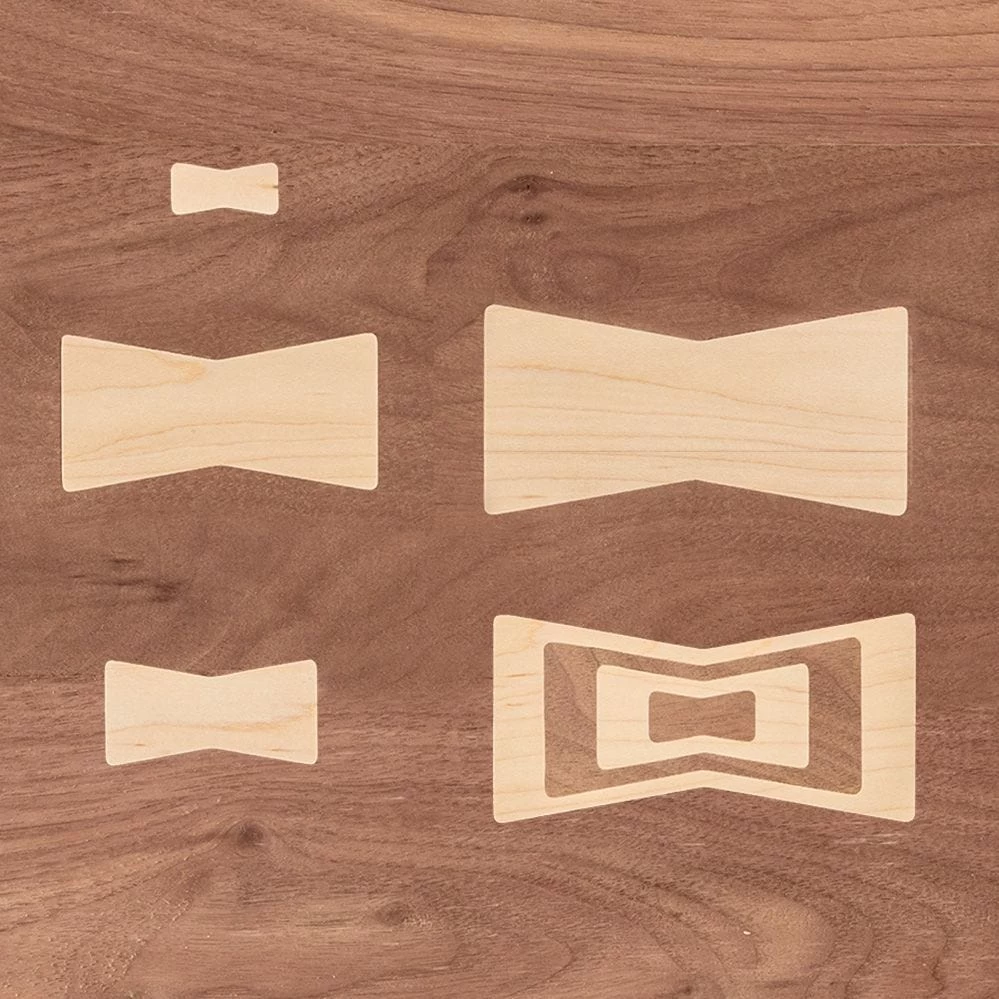 - Starter Kit includes two bow tie inlay templates—add optional templates as needed