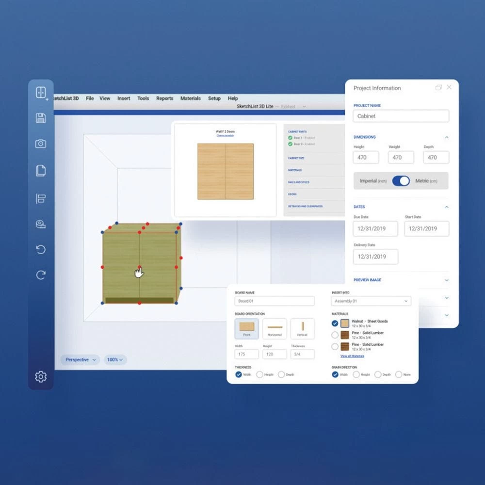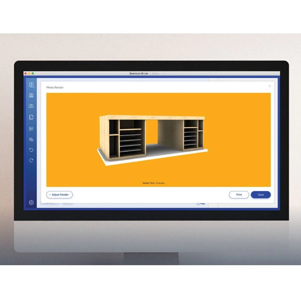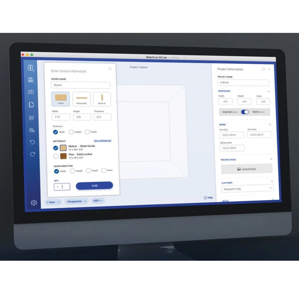 Whether youāre building a treehouse for the kids or custom cabinets for a client, SketchList 3D lets you draft it with striking detail, with detailed layouts, drawings and cut lists. It allows you to easily manipulate three-dimensional objects on your screen in a natural, intuitive way, assembling your cabinet much the way you would in your shop. This is the V5 Hobby version, featuring a redesigned customizable interface and more realistic project renderings. Hobby is the lite version of SketchList 3D Pro, perfect for DIYers and hobbyists who want ease and precision at a low cost. Create precisely dimensioned virtual boards with a few clicks, then drag and drop to the correct position, or copy and paste to duplicate the board on the other side. As your drafts rapidly come together, all required drawings and cut lists are updated in real time. Joinery, hole drilling, and contours are easy to integrate. Add tenons to the ends of your boards with a few clicks, and all relevant lengths are automatically updated on the cut list. Fast, flexible and easy-to-use, Sketchlist 3D Hobby will save you time, allow you and your customers to easily visualize your designs, and save money by eliminating mistakes and rework.