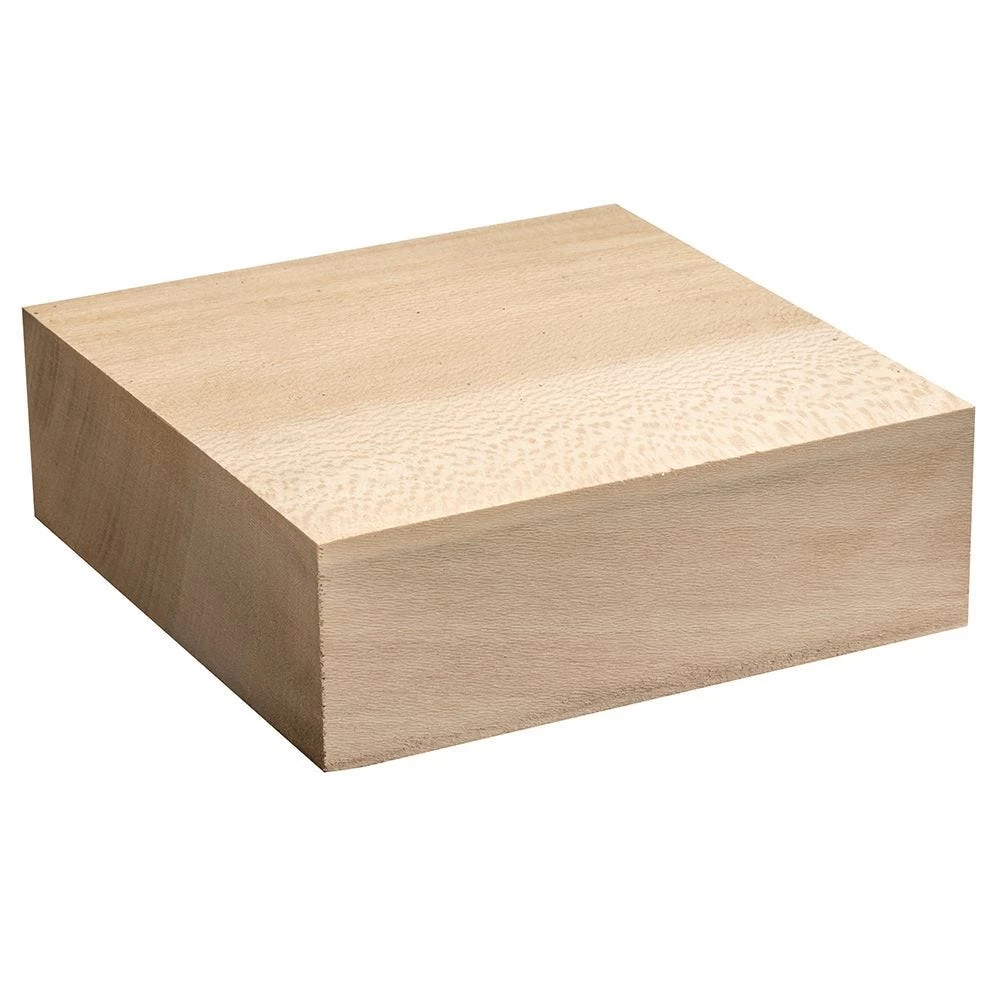 Sycamore is a little-known domestic species with superb ray fleck, particularly on quartersawn sections. It is sometimes referred to as ”lacewood” for its flake pattern. While its interlocked grain can pose problems for planers, it turns beautifully on the lathe. The sapwood is usually a light tan, while the heartwood is a reddish brown. Texture is fine and even, much like maple. These blanks are dimensioned at 6” x 6” x 2” for small bowls and platters.