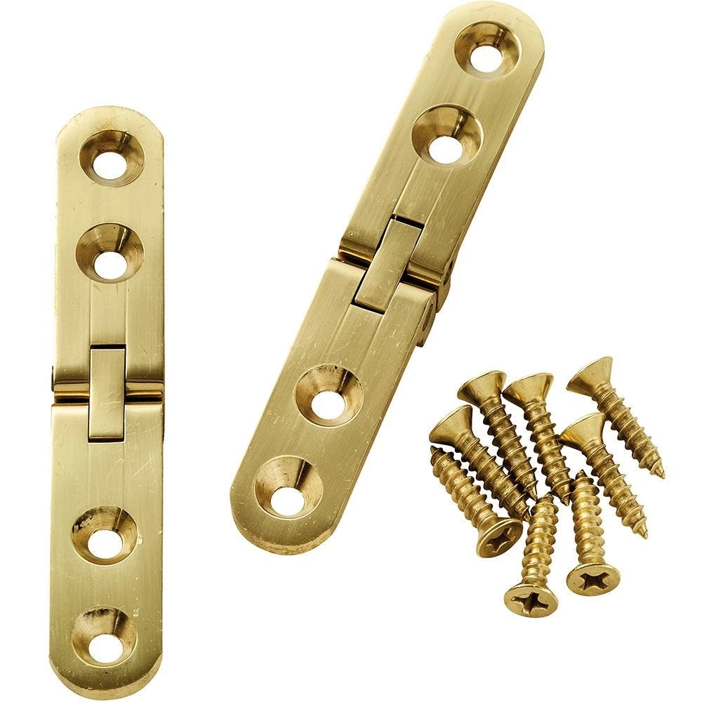 Great for sewing machine tables and drop front desks. Made of highest quality solid extruded brass. These hinges have twin pin joints with steel pins and recessed knuckles on the top for a perfectly flat surface. Solid extruded brass with a polished finish.