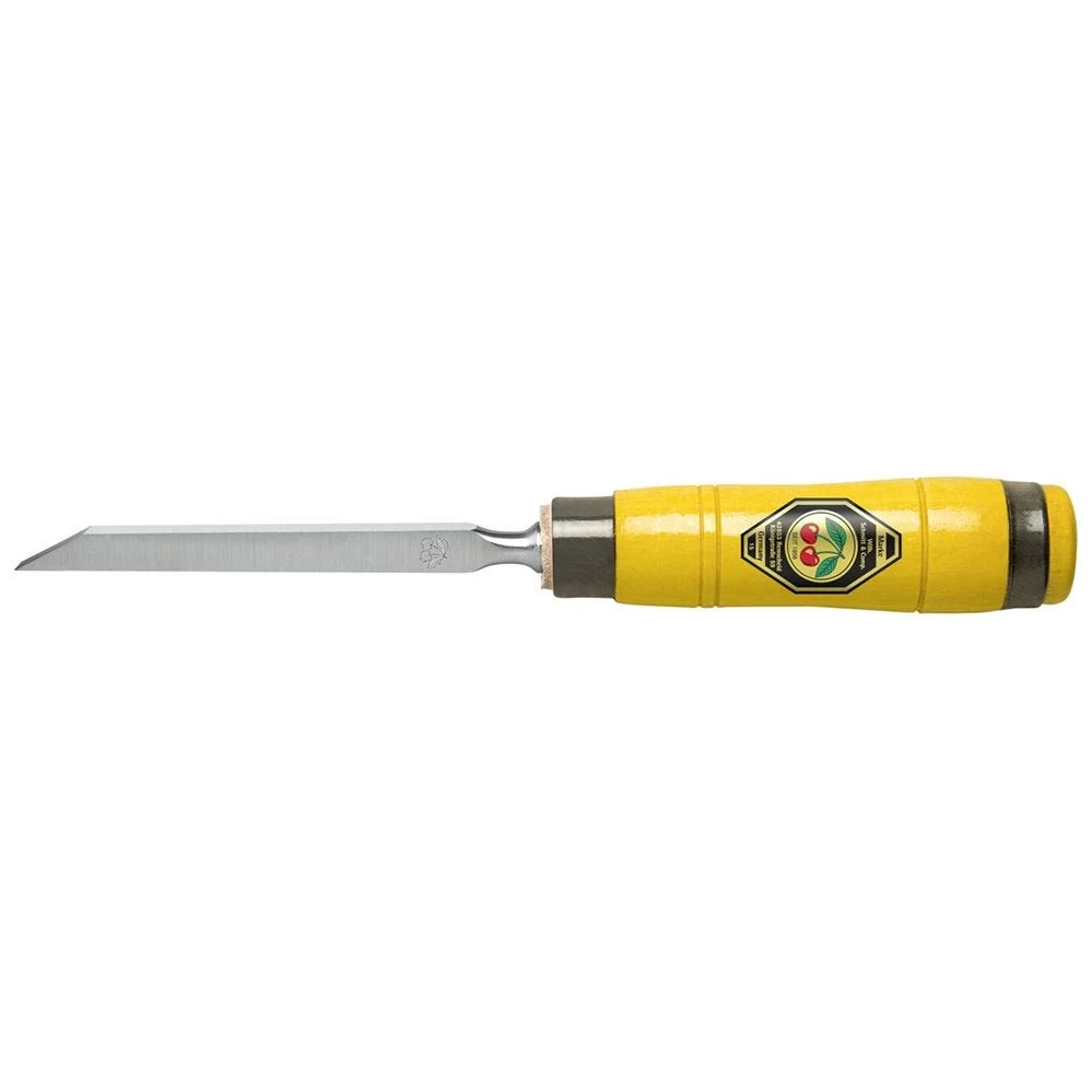 Manufactured in Germany since 1858, Two Cherries are known around the world for exceptional quality and edge retention. Solid forged of the highest quality carbon steel, each chisel is hardened to 61° Rockwell, producing a strong chisel that will stay sharp longer than other chisels. Each tool is then fitted with a hornbeam handle appropriate for the size of the blade