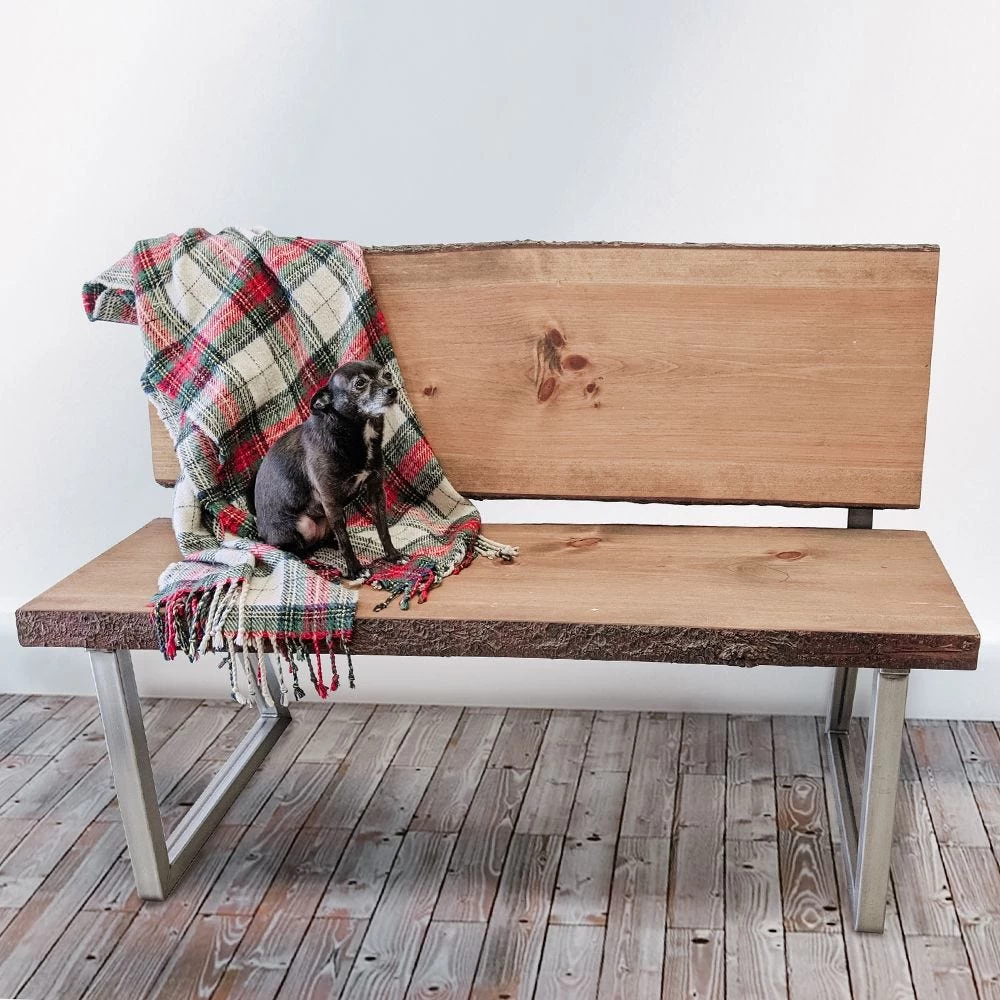 It’s easy to create your own custom bench or chair using these sturdy welded legs with integrated backrests. Just attach boards or slabs to the seat and backrest. These offer a bit of flex in the backrest, making for a very comfortable seat. The rear legs are angled for stability, and the steel tubing offers uncompromising strength. Made from unpainted raw steel, which will need to be coated with clear lacquer or metal paint to prevent rust. Alternatively, you can leave them raw and they will acquire a natural rust patina over time. Each leg set is pre-drilled and includes mounting hardware. Made in Canada.