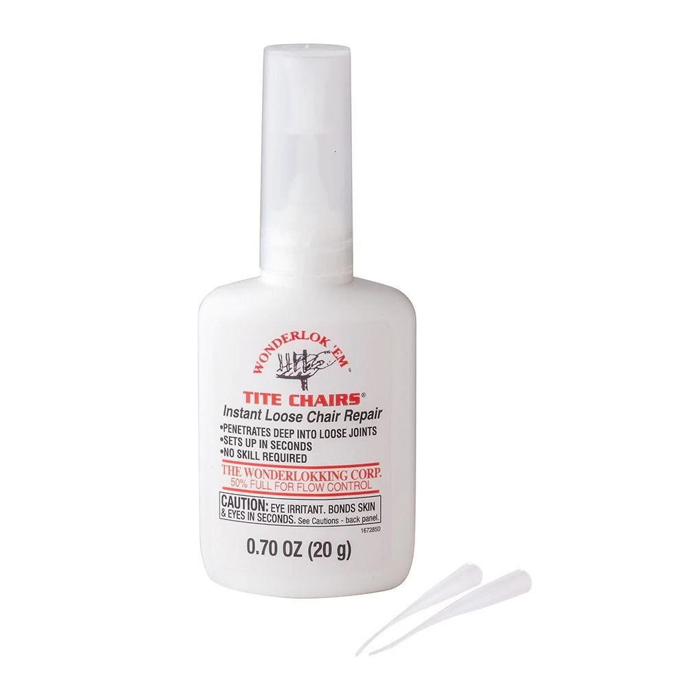 Turn quick fixes into virtually permanent repairs! Unlike many products that swell the wood for a temporary repair, WonderLok ‘Em also contains an adhesive that penetrates deep into loose joints and sets up in seconds. Works on repairs from small to large. Specially formulated instant glue is super strong, fast acting and long lasting! Eliminates loose and noisy joints found in most types of wood furniture. WonderLok ‘Em Loose Joint Repair instant loose chair repair works on a variety of jobs!