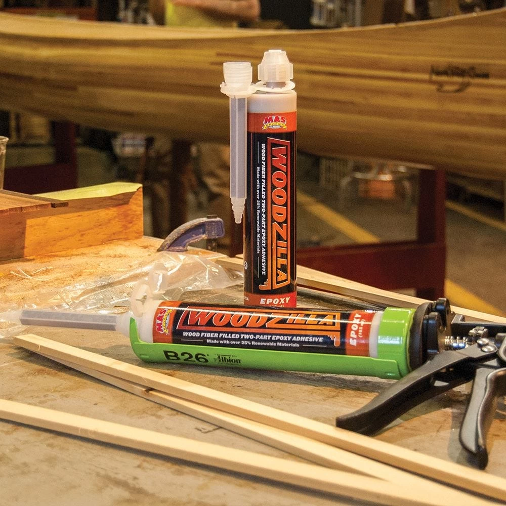 Woodzilla is an epoxy resin that’s impregnated with wood flour for an excellent color match on wooden surfaces. Boat builders use it for filleting the joints in wooden boats. It’s also great for bonding wood surfaces, and for filling and leveling voids. Just like the other cartridges from MAS Epoxy, each tube of Woodzilla comes with two static mixing tips so you can use the same tube several times.